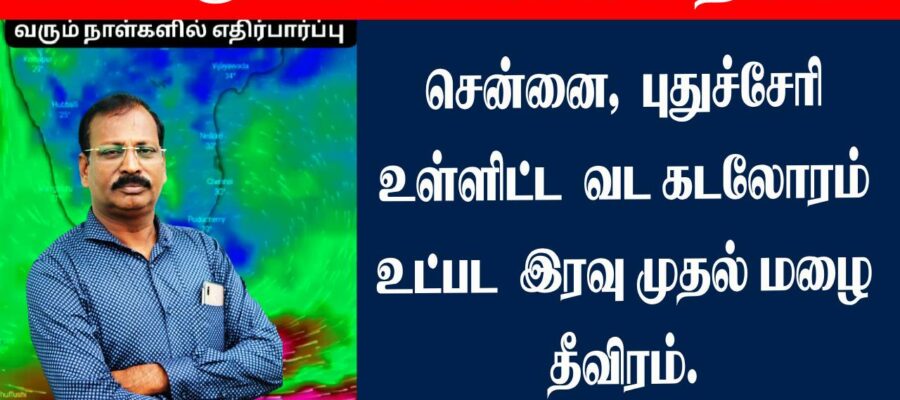 சென்னை,புதுச்சேரிஉள்ளிட்ட வட கடலோரம் உட்பட இரவு முதல் மழை தீவிரம்.